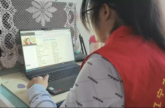 图为残疾家庭学生正在通过线上平台学习