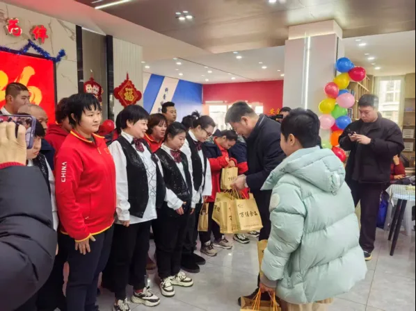 演出落幕,温情延续。区残联、街道社区工作人员及社会爱心团体代表,为在场学员们送上精心准备的春节礼物,与学员们亲切交谈、送上新春祝福,让学员们在寒冬里感受到家一般的温暖。