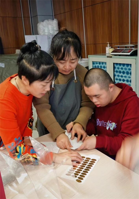 “这里的包容度很高,让孩子很有安全感。现在孩子不仅有了一份收入,情绪管理也变好了,人也变得自信起来。”闫雪是一位残疾少年的母亲,她陪着孩子学扎染、鼓励孩子加入惠残工坊,到后来自己也加入进来,陪伴、创收两不误。
